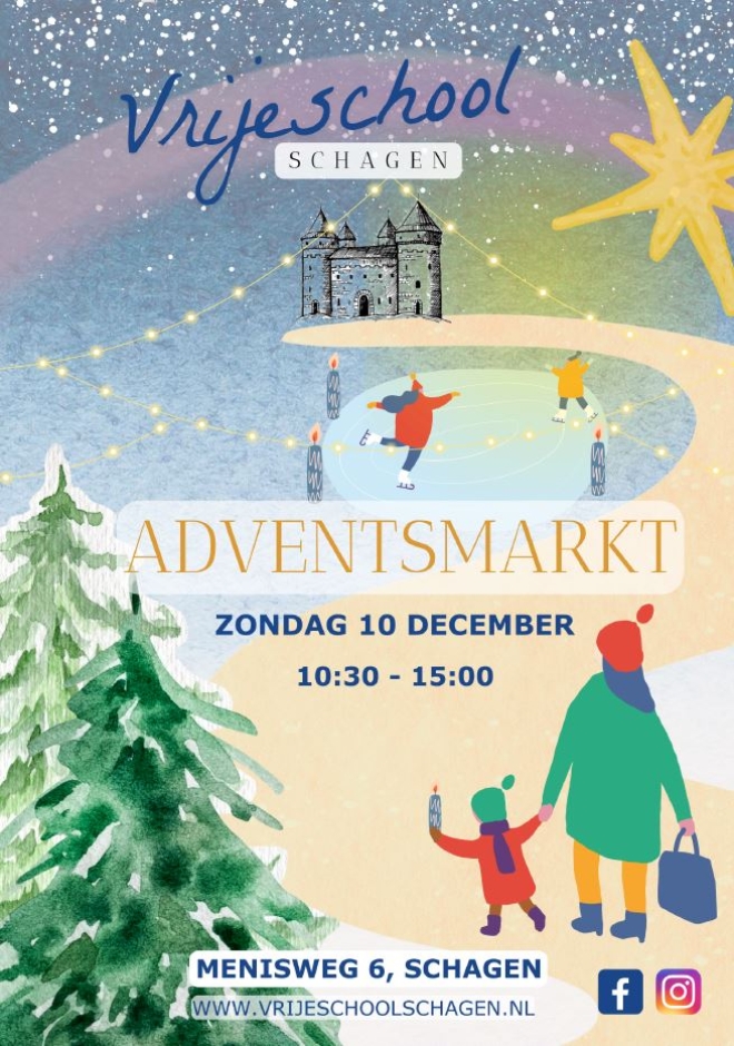 Ondertussen zitten wij niet stil. Komende maanden worden er verschillende activiteiten georganiseerd voor en door de Vrijeschool Schagen. Het eerstvolgende evenement is een Adventmarkt op 10 december van 10.30 tot 15.00 aan de Menisweg 6 in Schagen.