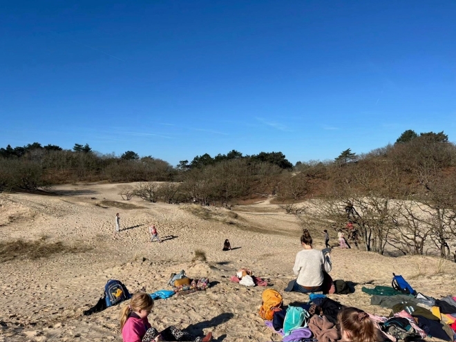 Terwijl de zon langzaam aan kracht wint en de duinen van Bergen groener kleuren, is klas 1 gestart met een bijzonder avontuur: onze maandelijkse buitendagen. Maar wat doen we daar nu eigenlijk de hele dag? Is het alleen maar vrij spel, of gebeurt er meer onder de oppervlakte?